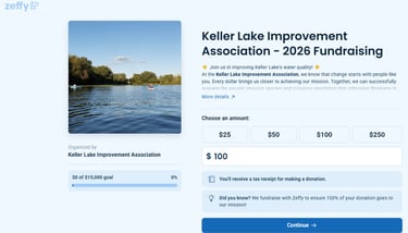 We use Zeffy.com because they offer various payment types (Credit Card or direct transfer from your checking account (ACH transfer)) and do not charge us any processing fees (since they cover the fees for non-profit organizations). So, when you donate, we receive 100% of your intended donation! However, Zeffy.com will ask if you want to leave a tip to help cover their processing costs. This is totally voluntary. You can change the suggested tip amount by choosing "Other" from the drop-down list in the Tip section and changing the value to whatever you want, including zero.